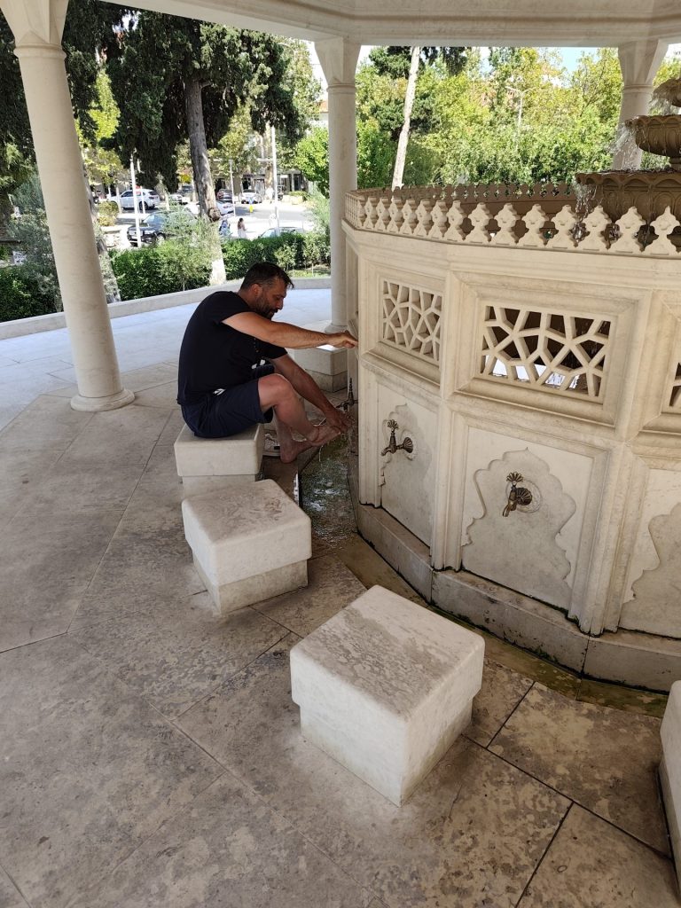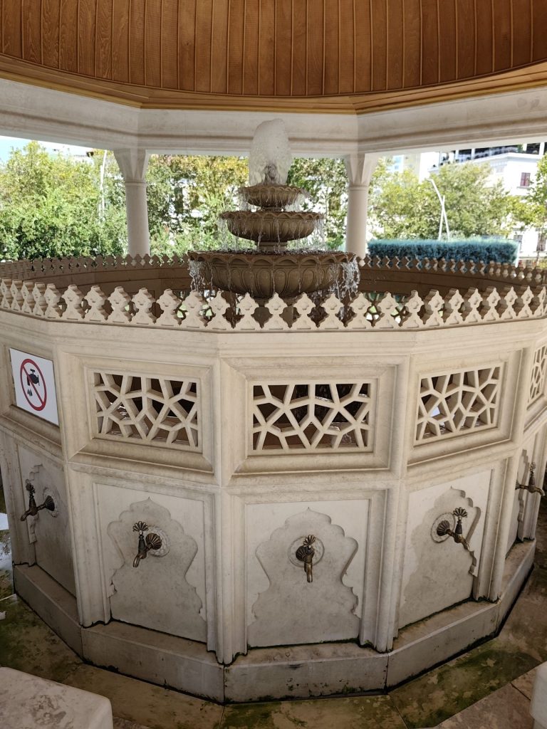 Confesso che non ero mai entrato in una moschea, e non mi aspettavo tale splendore. Quello che mi ha lasciato impressionato, è la grossa differenza tra uomini e donne, nella cultura mussulmana. Nel rispetto della loro religione, ho tolto le scarpe. e sono entrato in moschea . sono rimasto a bocca aperta, le foto non rendono la bellezza degli interni e degli esterni. All’uscita mi ha impressionato una fonte d’acqua con dei sedili in pietra per sedersi. Parlando con un ragazzo che si esprimeva bene in Italiano vengo a sapere che prima della preghiera, i fedeli si lavano e purificano mani e piedi, per essere presentabili l loro Dio. di seguito qualche foto.
