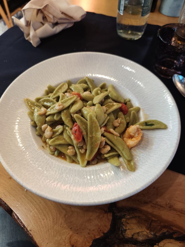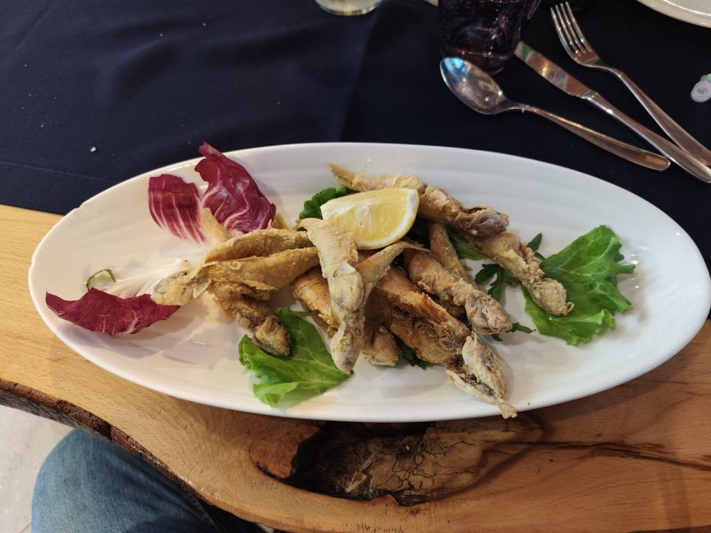 Arrivo davanti al B&B pago e saluto, ma debbo mangiare, faccio una doccia ed esco per mangiare, avevo adocchiato vicino, un locale che facevano cose tipiche, ma scopro che è aperto solo a pranzo, mi rammarico di non avere il telefono del tassinaro, e mestamente vado a piedi. La mattina passando avevo visto una pescheria che vendeva pesce fresco, e noto che il pesce lo aveva messo all’interno, mentre entrava nel locale una ragazza vestita da cameriera, mi incuriosisco e mi avvicino, era diventato un ristorante. Il titolare era italiano e parlare con una lingua conosciuta senza dover gesticolare, valeva più del posto. Il locale dentro è molto curato e si chiama FISHOP mangio un’insalata greca, una pasta di pachino e gamberi, Triglie fritte, e tiramisù per un totale di 2706 Lek pari a 28,01 €. Sazio rientro al B&B e metto fine alla giornata.