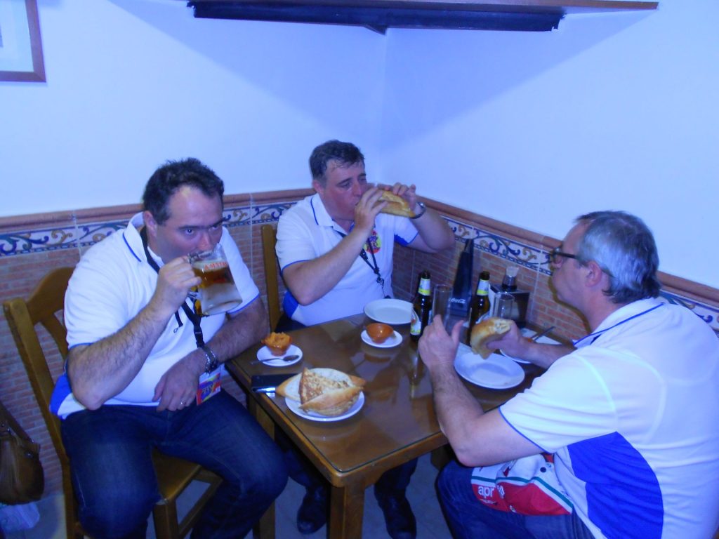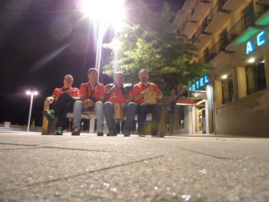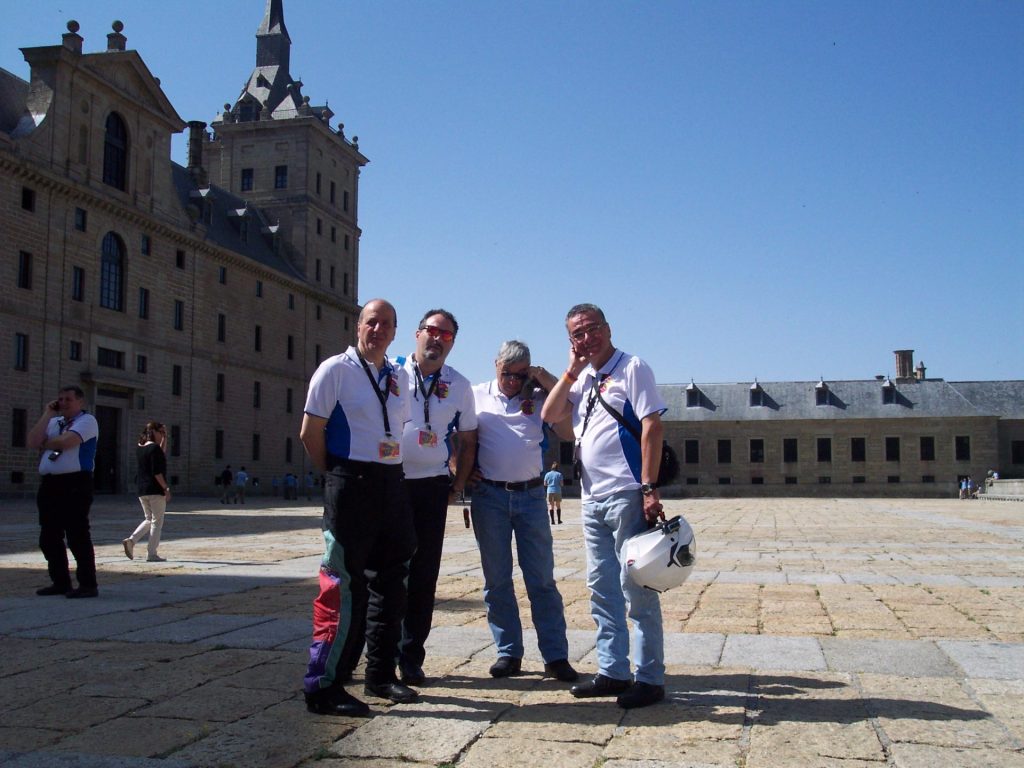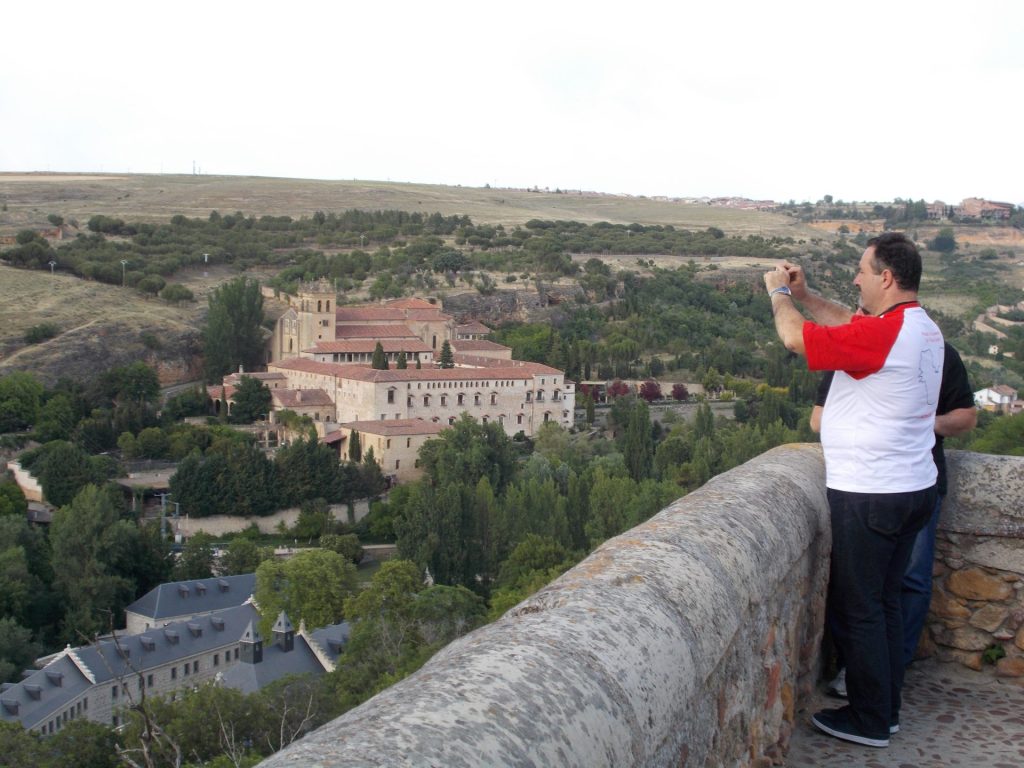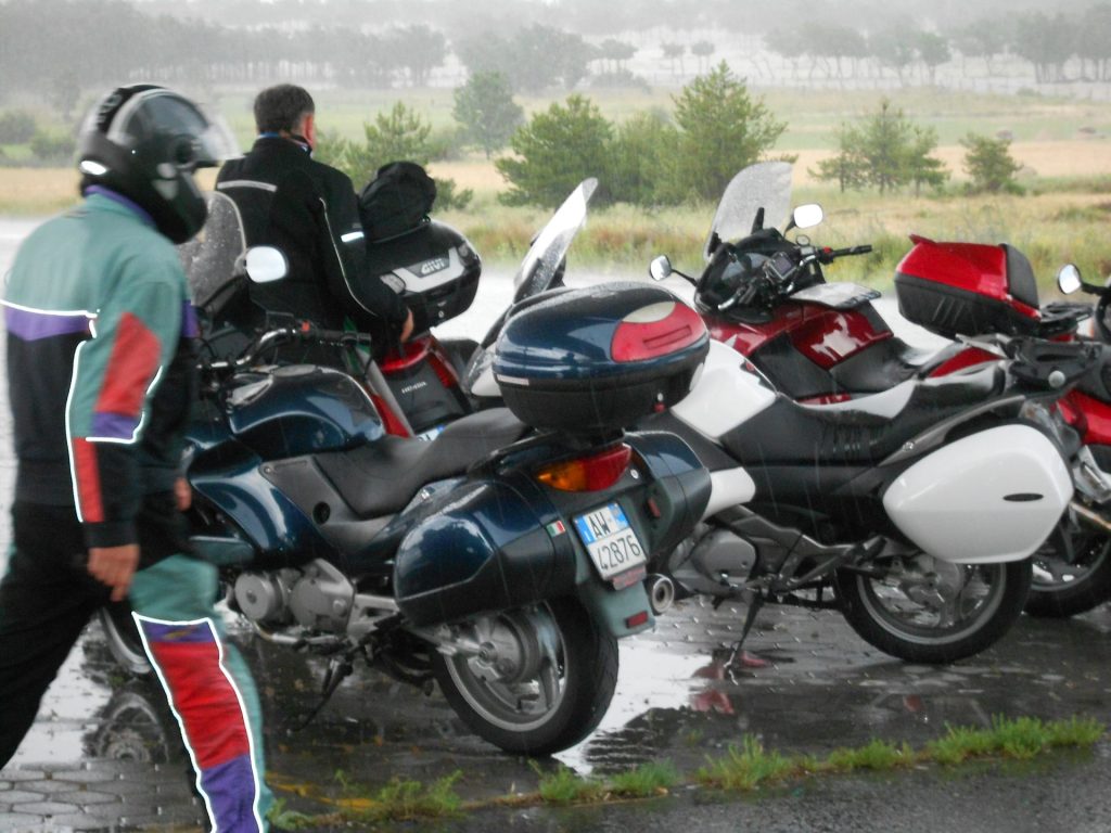 mentre proseguiamo il percorso, da lontano vediamo un muro nero, alcuni che vanno più veloci sorpassano un distributore, noi al centro riusciamo a deviare al volo e ci ripariamo sotto la tettoia, i pochi che hanno dovuto fare inversione e ritornare sono arrivati fradici. Il distributore era dismesso, pertanto non davamo fastidio, e siamo rimasti una mezz’ora il tempo che il temporale passasse.(40.74903, -4.45827) Torniamo a Segovia perchè oggi abbiamo la cena di Gala.